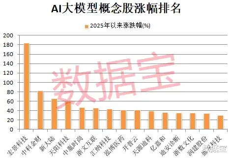 面对AI大模型这一蓝海市场,A股公司纷纷加大投入,争相涌入大模型行业。据证券时报·数据宝统计,截至7月11日收盘,涉及AI大模型的概念股超过80只,合计A股市值逾1.2万亿元。今年以来概念股平均上涨15.97%,跑赢同期上证指数。其中,宏景科技、中科金财、新大陆、天阳科技4股累计涨幅超50%。